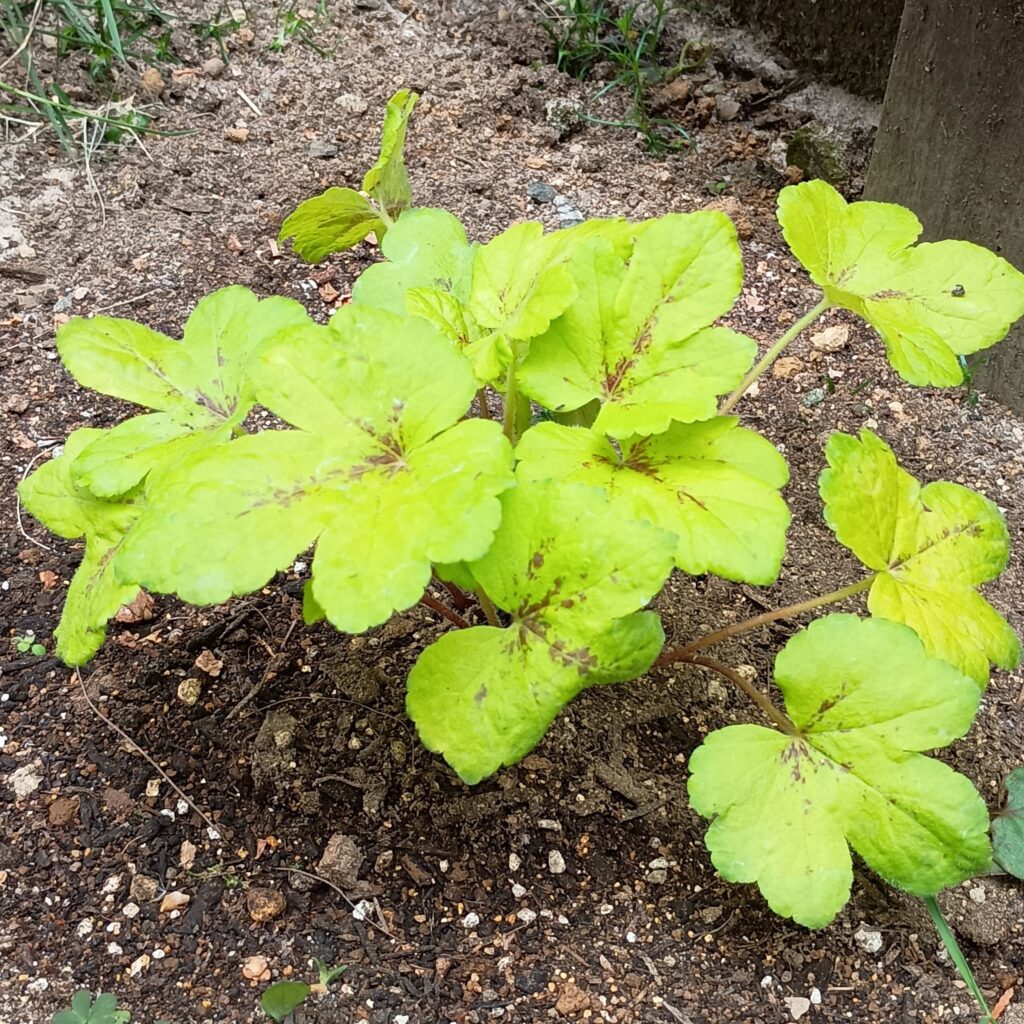 何を植えても枯れてしまう日陰に、ヒューケラを植えました。うまく育つといいな。
