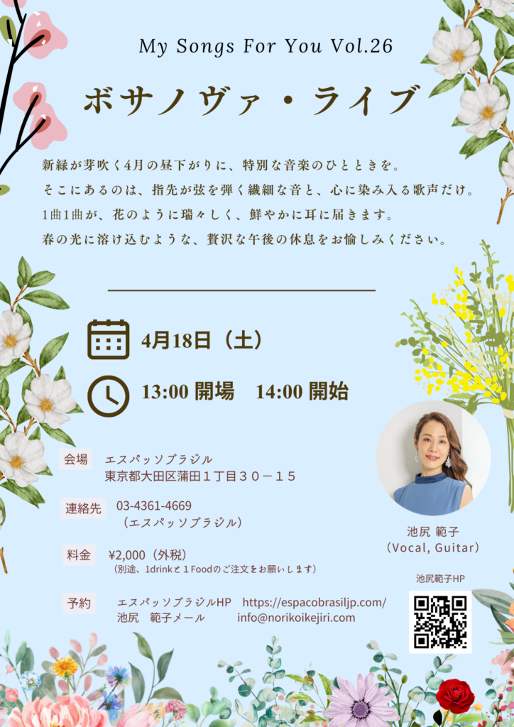 2026.04.18(sat)●エスパッソブラジル(蒲田) ボサノヴァライブ